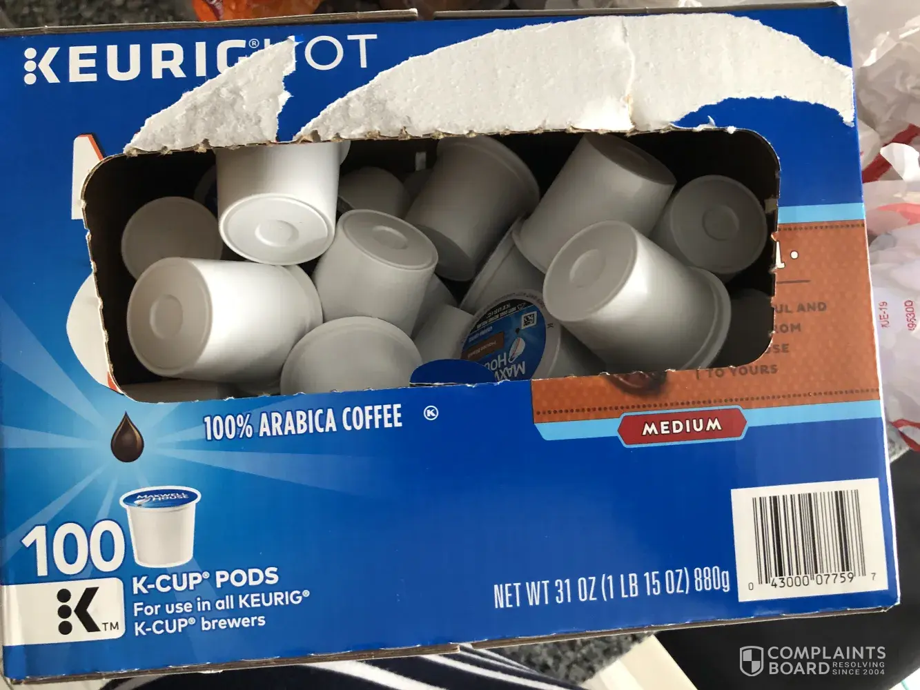 broken seals that protect the coffee in the k-cups