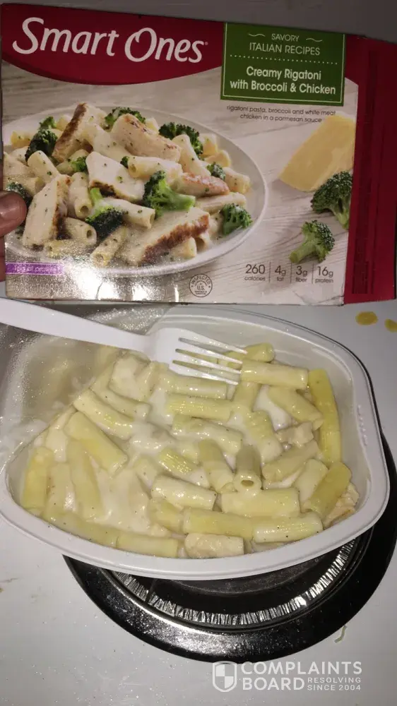 I purchased a overpriced healthy dinner expecting the get food that was somewhat similar to the photo or at least included everything listed on the box . However obviously you can see there is no Broccoli . Highly disappointed. When you pay the extra price you expect to get quality and that is missing here . I have always been a fan of this product and have never had a problem up until now .