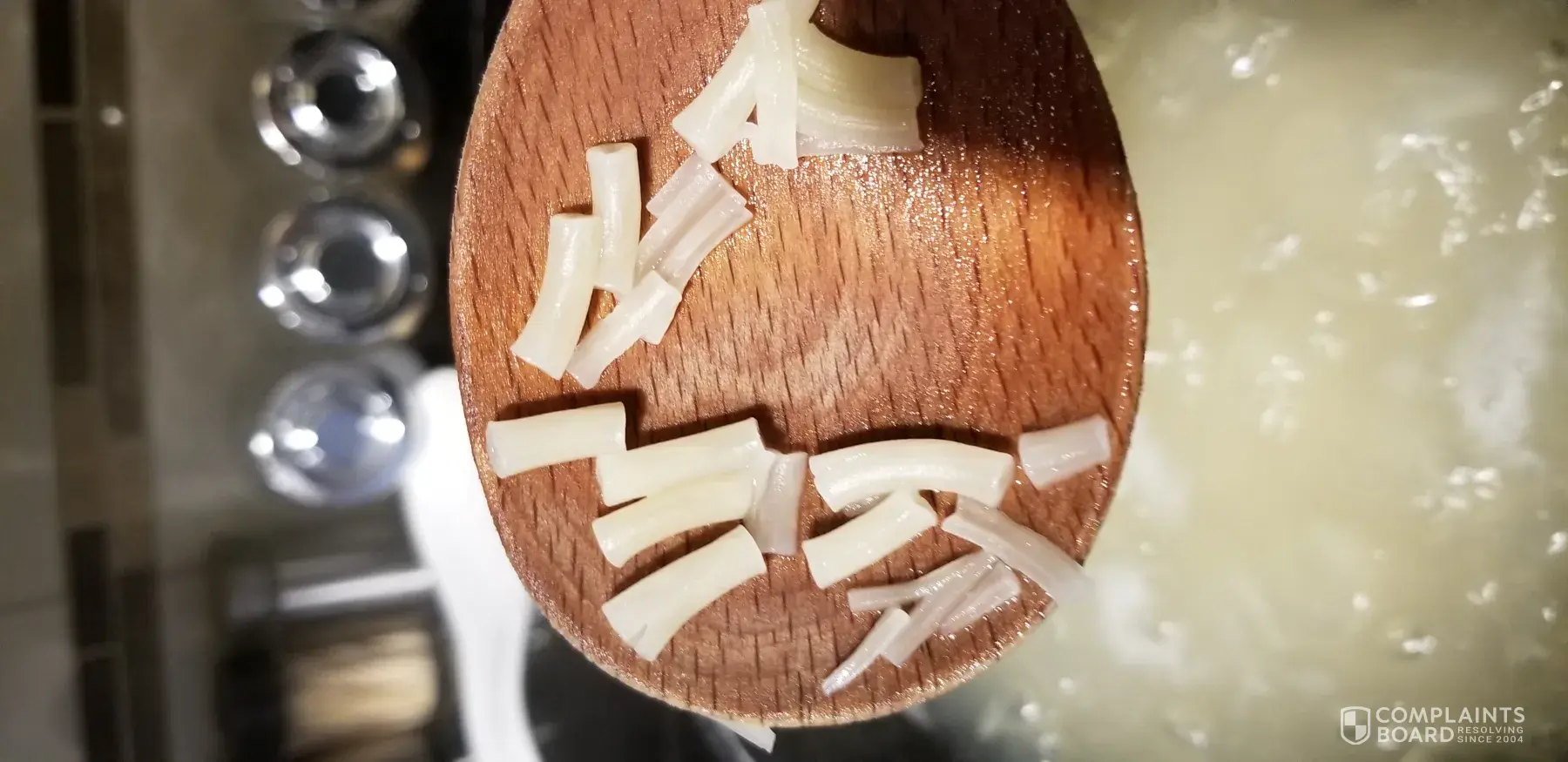 5/31/19 on this day I grabbed a box of the product from my cupboard. I had my 3 grandchildren over and was making it as part of their lunch. After the water started boiling, I dumped the box of shells in the water. Something else came out of the box with the shells. I am sending the picture. It appears to be a broken piece of wood trim. I just wonder how something that obvious would pass thru the inspection process. I feel the resolution should be more than the price of a box of the product. I'm requesting a $25 refund. Jeanette Niehm [protected]