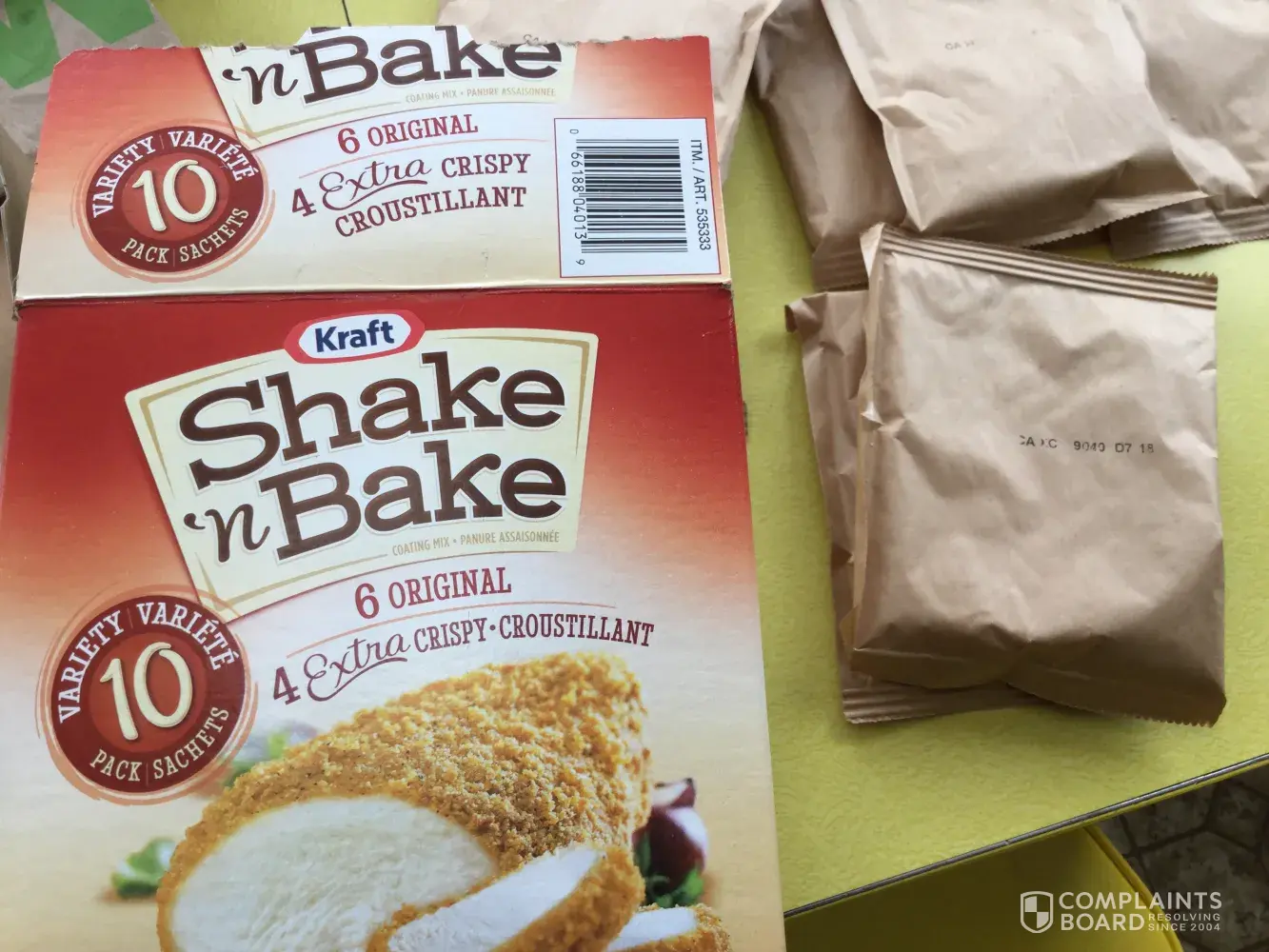 I have opened my recently purchased 730 g, Variety 10 pack of shake and bake. It is supposed to contain 6 Original and 4 extra crispy. Our previous purchases have always had each package labeled so we know which one we are opening