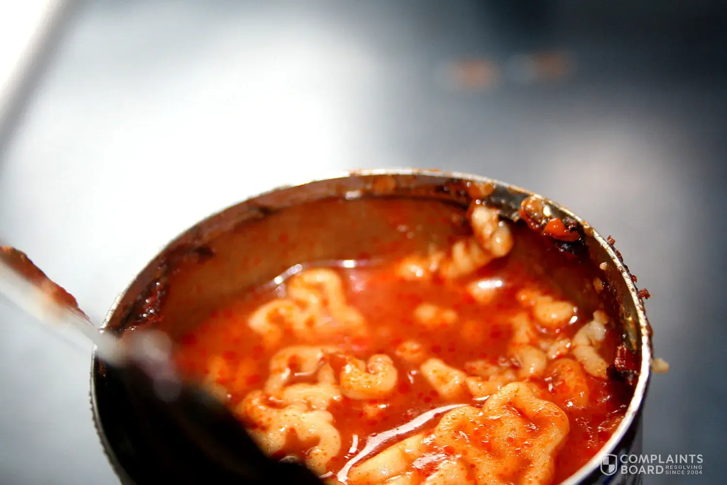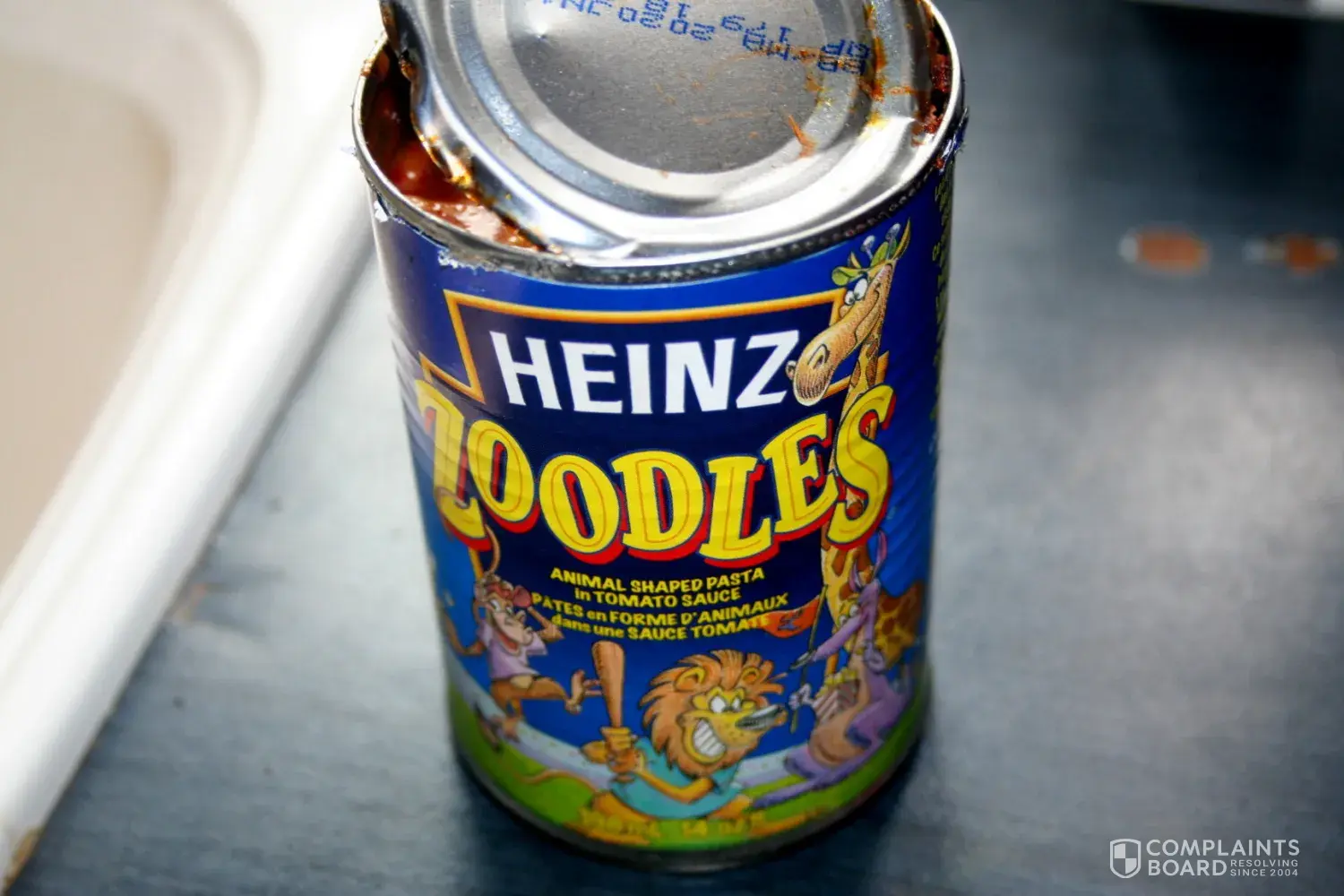 Upon opening a can of zoodles for my 4 year old granddaughter a scummy black substance oozed out the top as I used the can opener. First I checked the date and it is June 17 2020. I continued to open the can and the black scum was around the top edge of the can. I took pictures to show. I have no receipt to return it to the store as it was purchased approximately 2 weeks ago. After taking pictures I discarded the zoodles and then tried to reason with a 4 year old why she would then be having a sandwich for lunch. I normally do not buy products of this nature but thought it would be a treat for my granddaughter. I guess I will continue to not purchase these items if they cannot be trusted. Thanks for your timely response.
