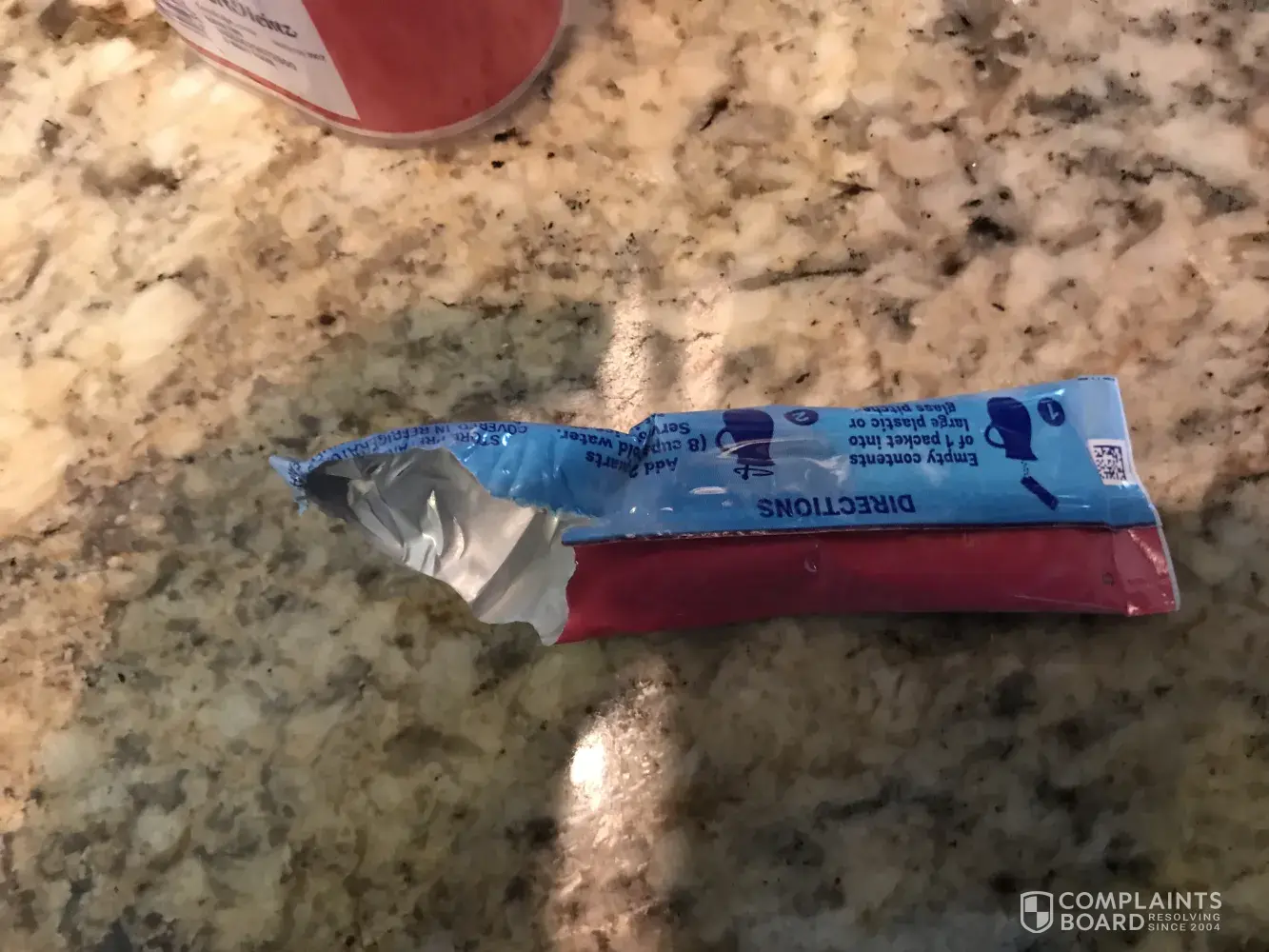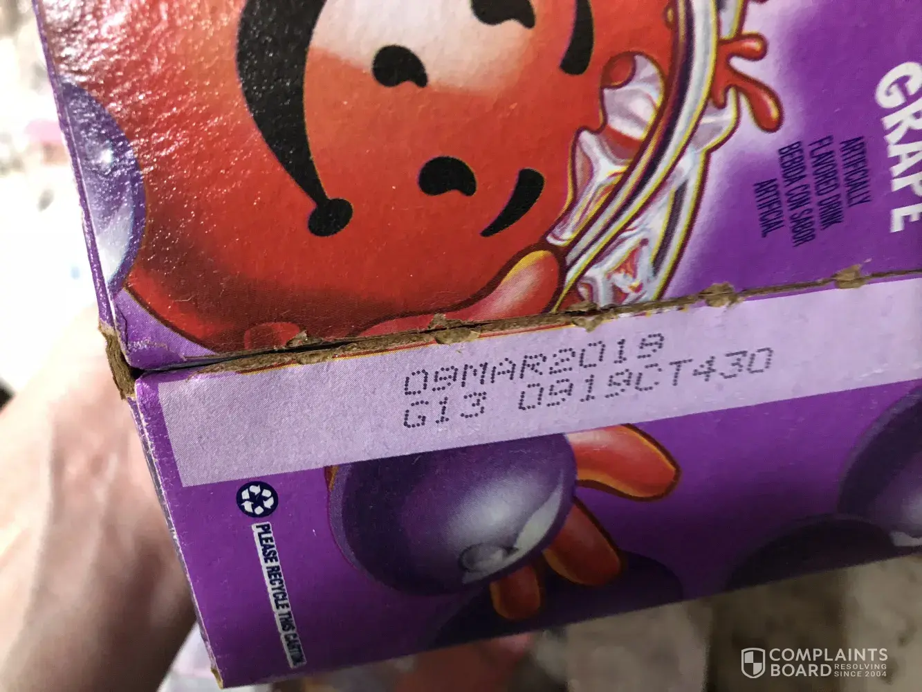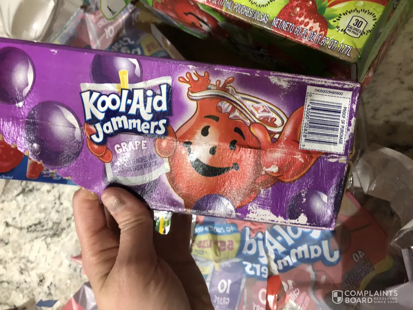 I bought a 4 pack of koolaid jammers from sam's Club and when I took the Cellophane off the cardboard containers were all wet from several broken open juices from various packages and everything had to be wiped down that was salvageable. There was 6 open ones and one big mess that wasn't worth the $5.98 I paid for. UPC [protected]. Please contact me about this issue [protected] or [protected]@hotmail.com. Courtney