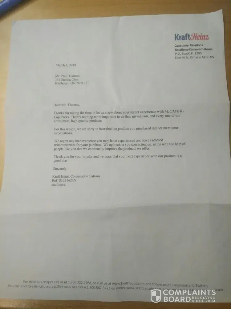 Complained to Woolworth Eastland shopping centre and was told to put in writing to Kraft Heinz.