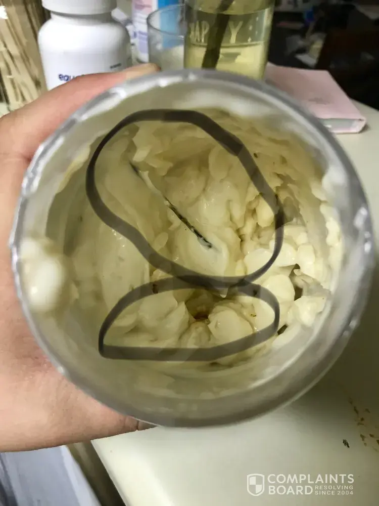 Last night on April 29th I went to make my husband a sandwich, I looked down in to the container of miracle whip that washout two thirds gone and saw something reddish black. I grabbed a butter knife to scoop out the dis colored miracle whip to find that it was a nail that had rusted causing the reddish discolor. this is very upsetting as I have two young children that have eaten out of this container.
