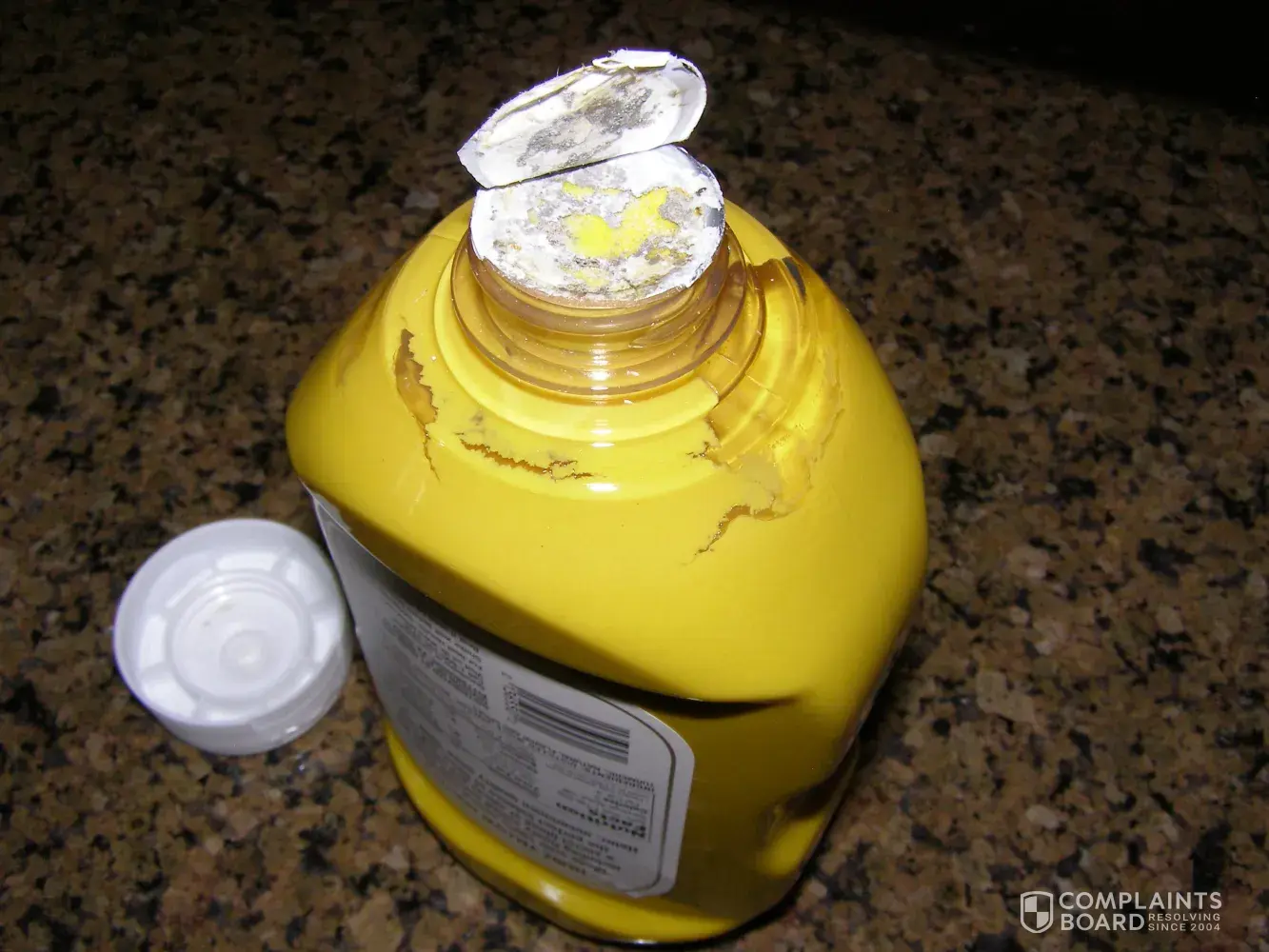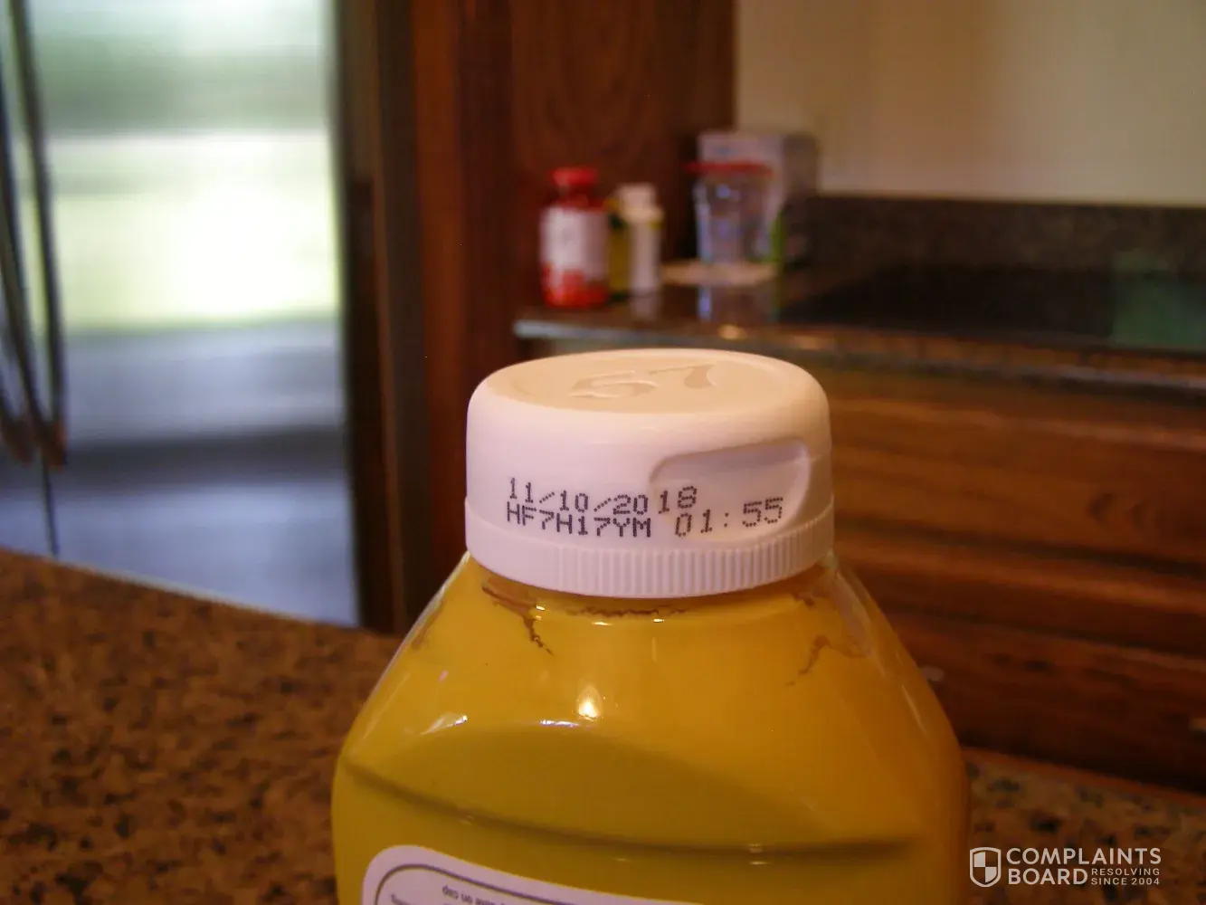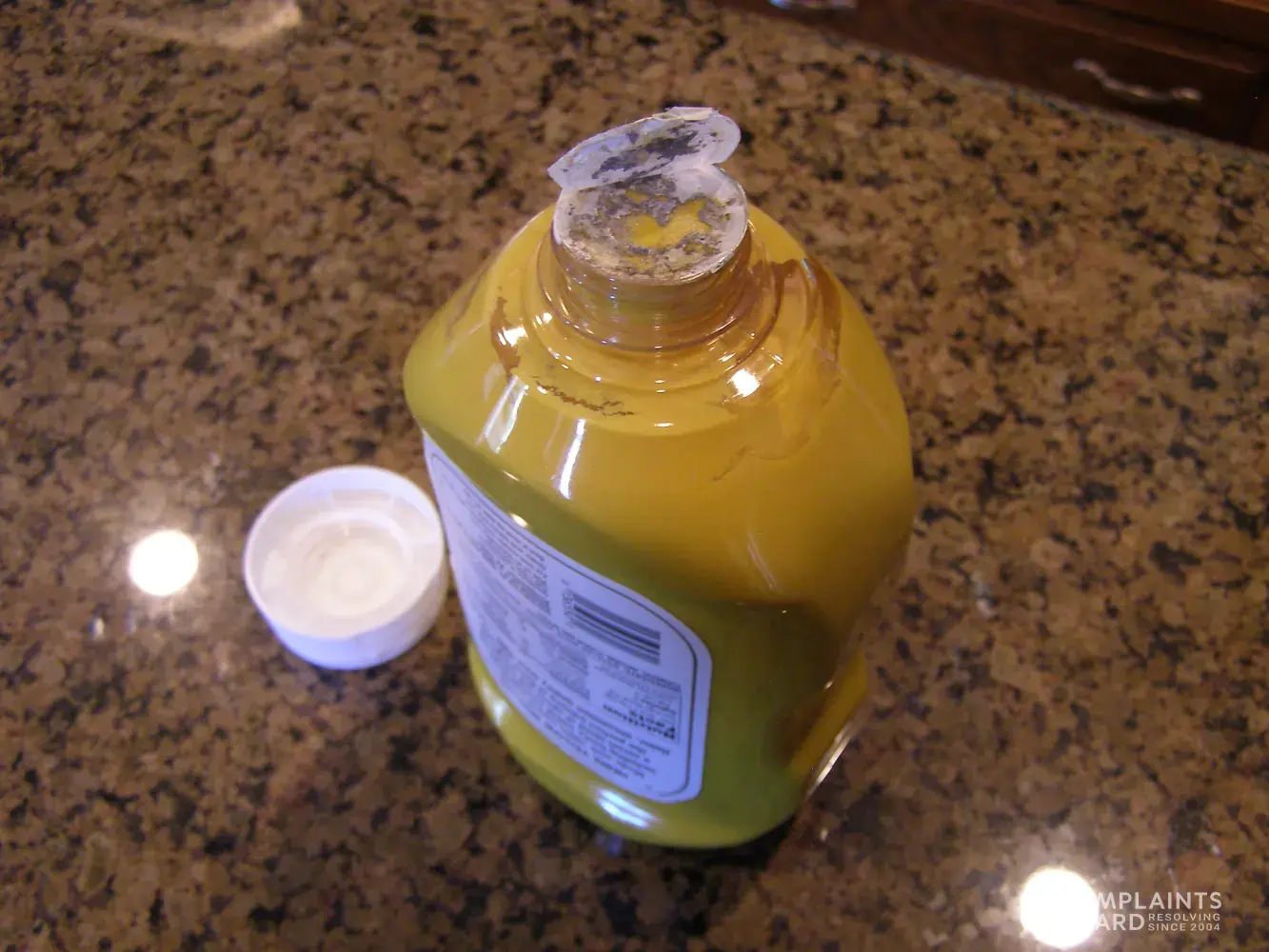 On opening the seal beneath the cap the seal appears to be contaminated with a mould. Obviously, despite its sell by date, it is unfit for human consumption. It was part of a four pack, purchased at Sam's Club at Denton, TX. The item was purchased on 4th May 2018.