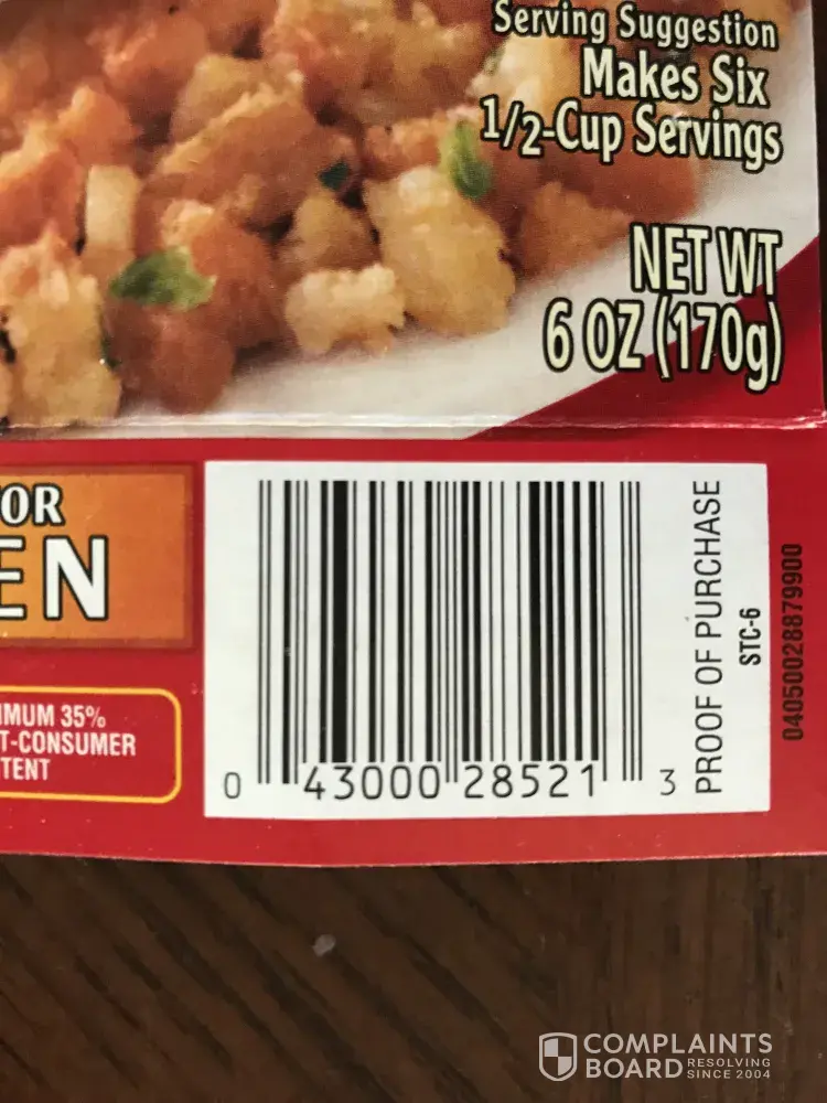 I stuffed a chicken with Stove Top today, March 18, 2018 and when mixing I found what appears ( I hope) to be a stem of some sort.
