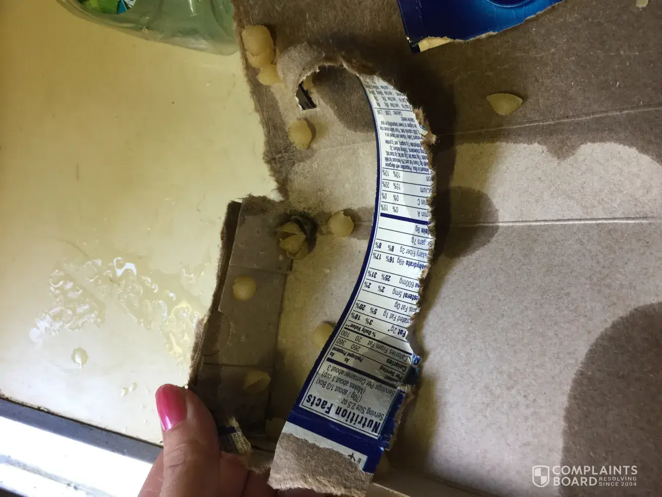 My husband used to love the cereal golden crisps. One day he poured himself a bowl out of a new box and was eating when he tasted something gross. Golden crisp is a dark cereal, so he had not noticed that mixed in with the cereal was shards of WOOD. After he made a dramatic show of washing his mouth out and scrubbing his tongue(lol), we took the bag out of the box and saw that even though there were no puncture holes in the cereal box, the bag inside had four puncture holes in it. We found quite a few shards of wood in the bag.