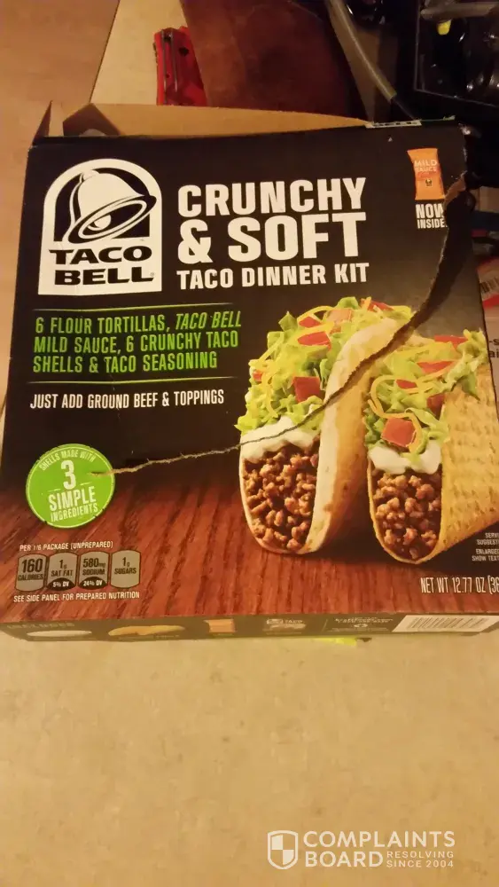 To whom it may concern: I purchased this product on 7/21/2017 at walmart which comes with 6 tortillas, 6 crunchy tacos, mild sauce and the taco bell seasoning. The problem is I started to make the tacos and the seasoning was not in the package and it is frustrating because dinner was ruined. I never had this problem before and if I pay money for this product I expect all of it to be there. I don't know what you can do about it but just wanted someone to know that cares