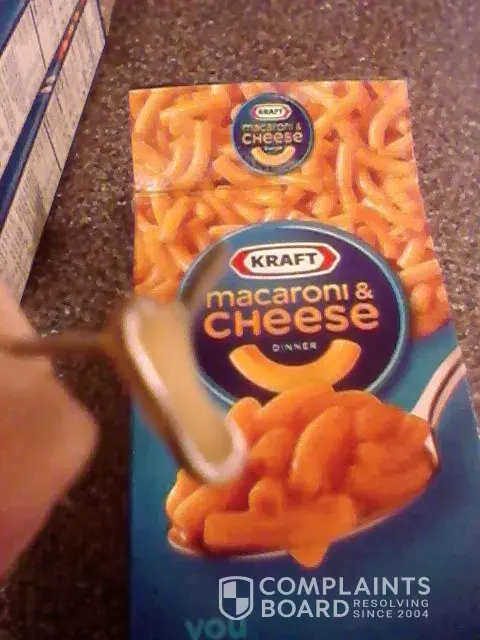 I mixed everything together using a wooden spoon, dished it out into plastic bowls and when I went to put salt on it I saw something shiny in my bowl. I took it out and it was a piece of wire. It disgusted me so bad that I wouldn't eat or let the kids eat any. If that's the kind of stuff we will be finding in Kraft products I don't think we will be buying anymore. I will make this public. Other customers need to be aware of what they may find. What if I would have just taken a bite and not looked before I started to shake the salt on? I am so glad I did look.