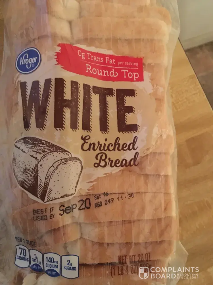 Tonight I was horrified At what I had ate. In the following pictures you will see the sloppy joe I had made using all Kroger products including the bread that has not expired and only 8 days since I have bought it. I just had my son 3 weeks ago and if I get sick due to eating your bread it will make it extremely difficult to take care of a newborn. I went shopping on September 10, 2017. It is currently September 18th, 2017. The bread will not expire until the 20th of September 2017 according to the packaging. I have shopped loyally at Kroger for years and this is not acceptable. I am beyond upset. I am beyond pissed off. I live in Toledo, Ohio. I shopped at the Kroger store on Suder Ave Toledo, Ohio.