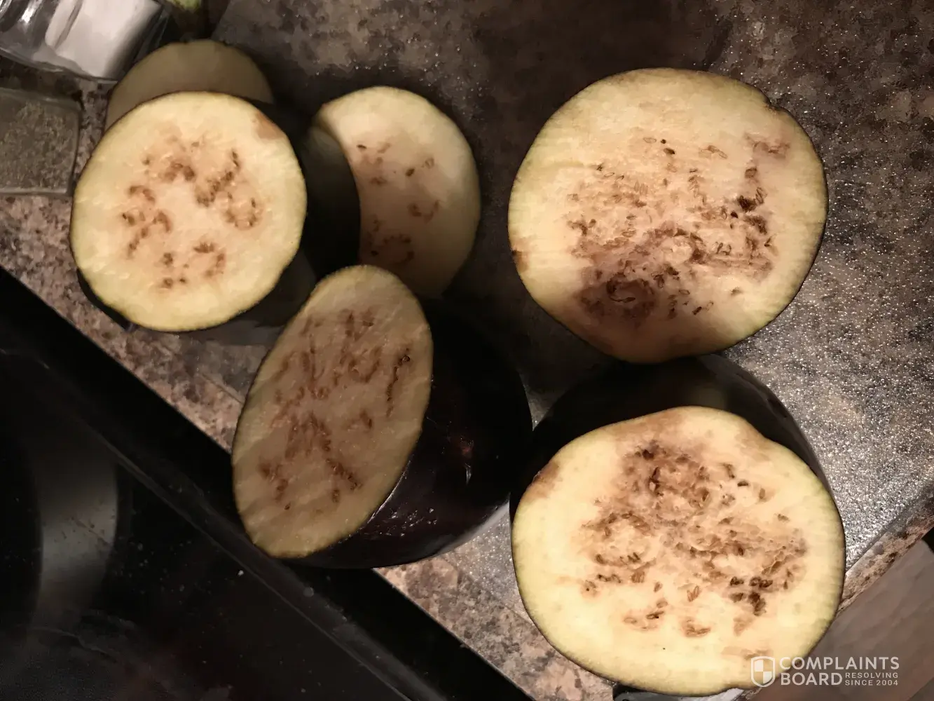 This is now my second incident with rotten produce from Kroger. The first happened with a red bell pepper. I brought it home from the store, cut into it that very day, only to find mold! I was in disbelief! Same sort of thing happened tonight with an eggplant. I picked up two from the store on my way home, cut into them tonight, only to discover they were both insanely rotten! It is disguising that these products are accepted into the store and put on the shelf for people to buy. The store is 25 minutes from my house. I will be going in tomorrow to complain. But I am now left without food to cook tonight. Kroger used to be mh favorite place to shop. I will now be looking for a new grocery store to take my business.