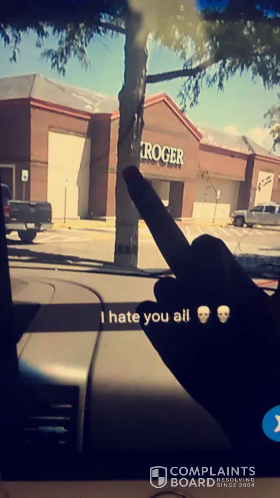 I think it's funny how kroger hires immature, rude teens. I was shopping at kroger a few days ago and as i was walking out this employee gave me the dirtiest look ever. All i said was hi and she responded with a disgusted look and a heavy sigh. No customer should ever be disrespected like this. I'm a grown woman and i'm getting disrespected by a snotty teen who doesn't appreciate her own job. Also, My son showed me his social media where it showed the same worker that i ran into, Nancy the one with glasses, flipping off kroger and saying she hated everyone. I'm not positive if she meant like the workers or the customers, but she shouldn't have done that. I get it jobs are hard but if you really don't like your job find a new one, sweety. If nancy really appreciated her job she would'nt have posted that picture on social media. If no action is taken immediately of how immature and rude she is i will be nothing but glad to take this to a higher person. I hope she gets fired immediately for her nasty behavior and disrespect towards customers and the store. Thank you have a blessed day. The kroger store is in Mckinney, Tx 75069 at Univeristy Dr. I will be attaching the explicit image.