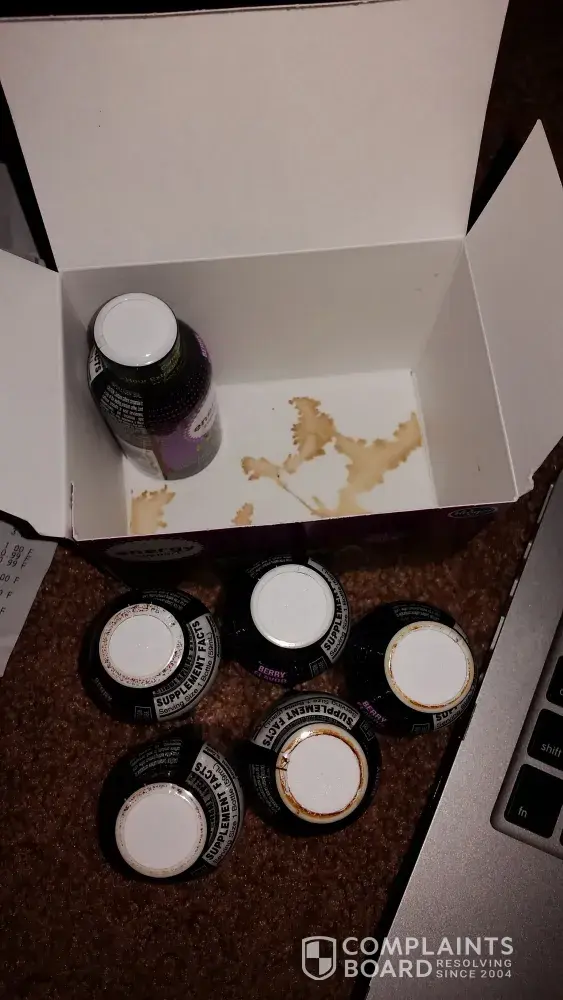 Hello, I love the Kroger brand Energy Drinks and usually buy them in the 2-pack but tonight I purchased the 6 - 2 fl oz pack. I opened the box and noticed the bottles had dried product on them, product dried at the bottom of the box, product dried on the seals of the bottles inside, and one bottle significantly lighter than the others. There is no visible flaw in the seal of the under filled bottle. Can you please replace the under filled bottle? I'm disabled and am unsure when I will be able to leave my home again. I have attached pictures of the product and my reciept.