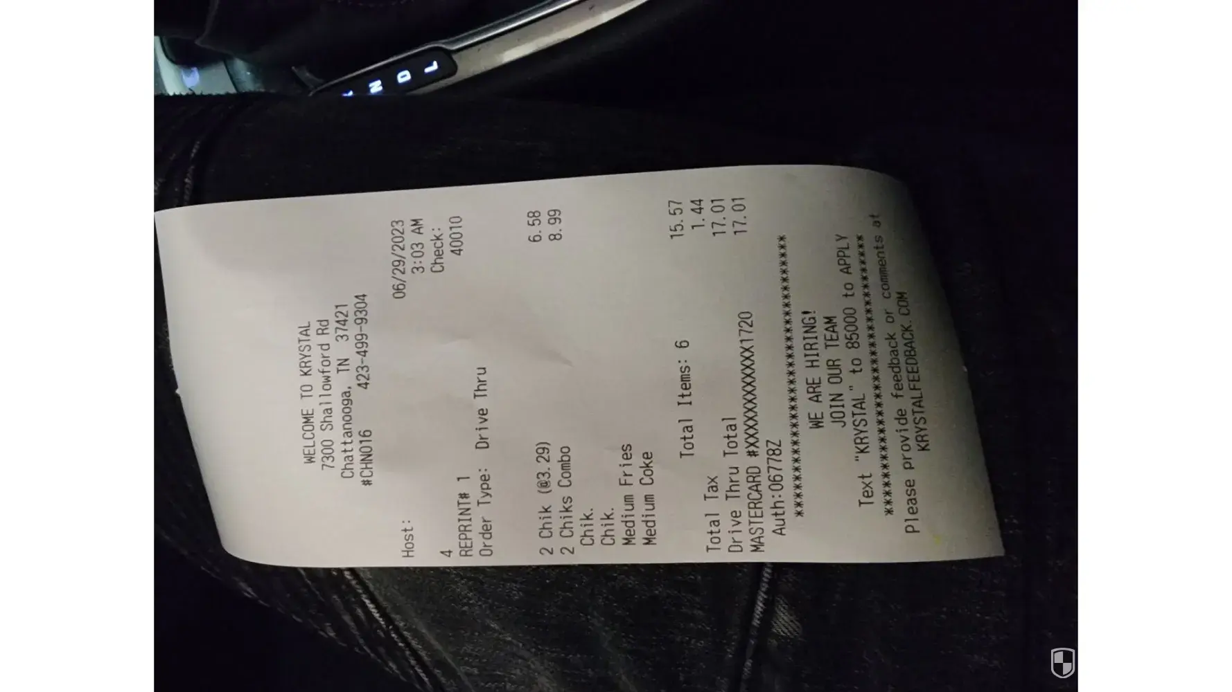 Store JAX029 2383 W. US Hwy 90 Lake City Fl 32055 My receipt is time stamped 1:19 PM - Wednesday March 15, 2023 I went into the restaurant and asked for 12 Krystals - and I asked for them to be made fresh. No mustard but with extra pickles. A woman directed employees to take 12 burgers "direct from the grill" with my other instructions. I paid, took my food...