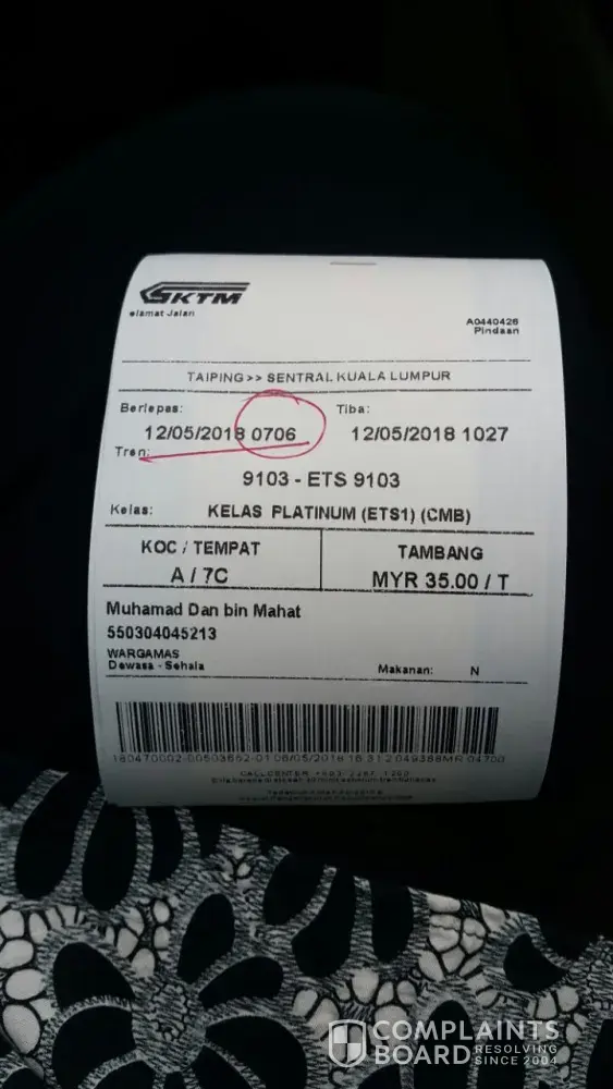 KTM / Keretapi Tanah Melayu Complaints Page 20 of 25