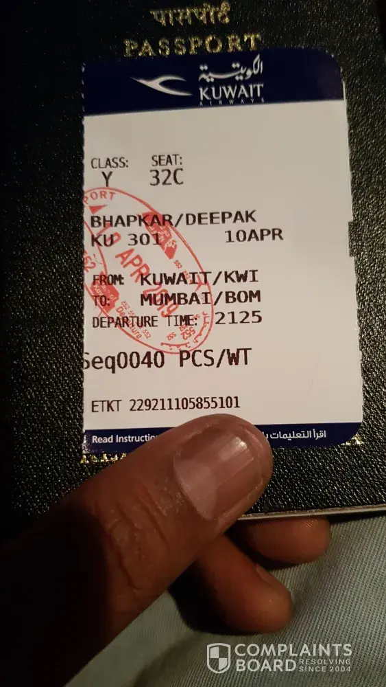 I travelled from mumbai(india), to kuwait .on 23 september. TICKET NO : KU304 23 SEP 13:05