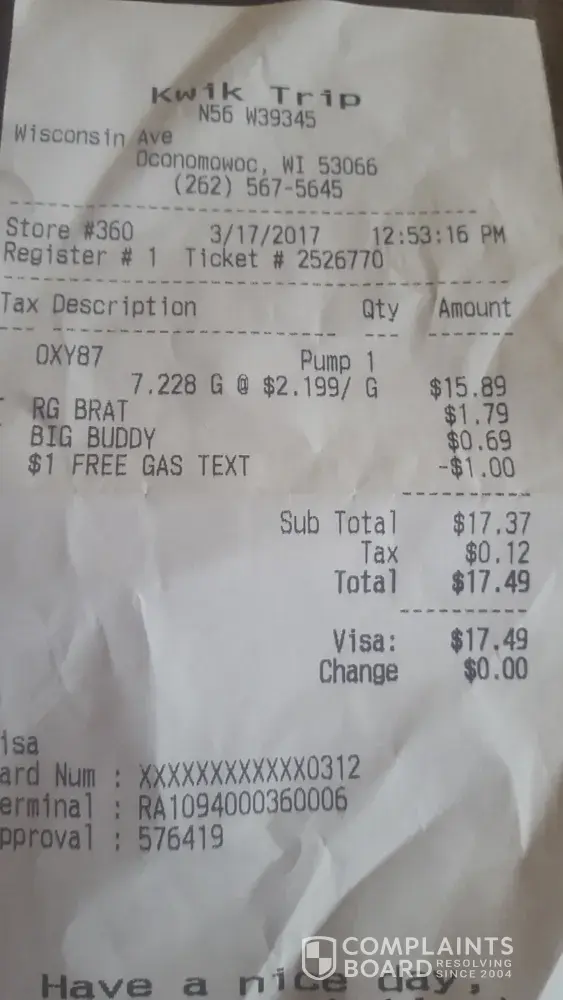 got letter in mail that there was a error in transaction about payment for gas. They stated party payed for items in store but clerk forgot to charge for gas. They used my liscense plate to get payment. Called company on this and they stated a male person was the purchaser and was never charged for gas by mistake. Told them don't have any male driver...