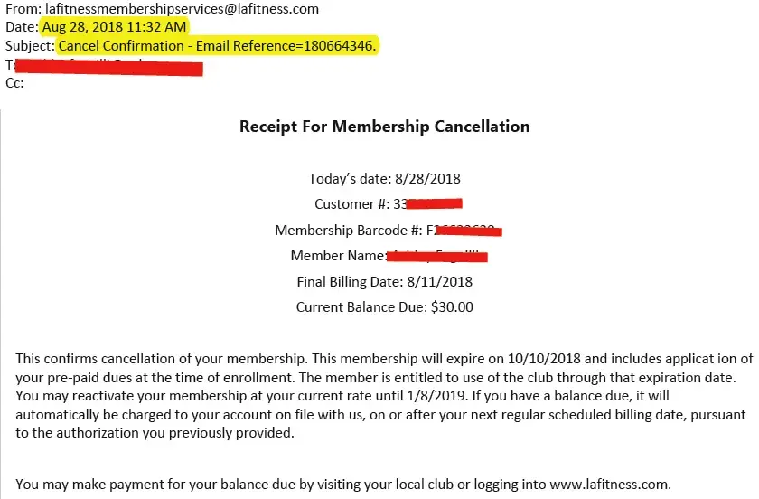 I had cancelled my membership on 29th Nov 2017 with LA Fitness.