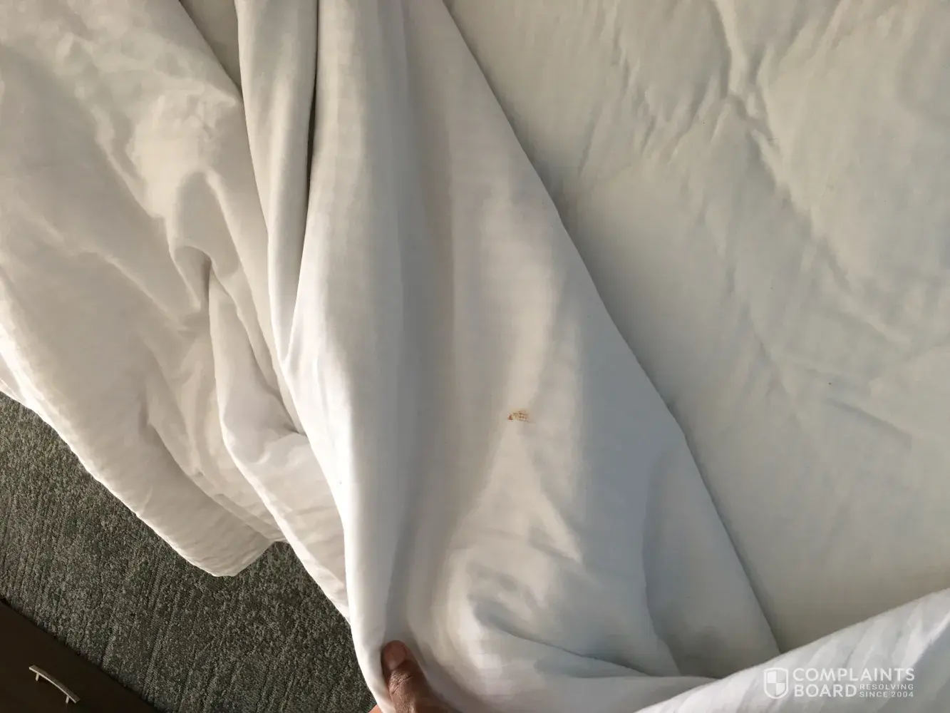 I SLEPT IN A BED WITH A BROWN STAIN THAT WAS SMEARED ON THE BED SHEETS, no one will be able to apologize for this deplorable room, or for putting my life and families life at risk.