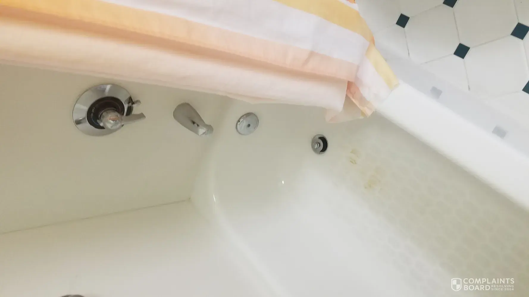 The carpet by the air conditioner was very soggy. All the carpeting was buckled and I happened to trip over it one night when I was wearing heels. The carpet was also fraying against the wall and into the bathroom area. The bathroom had mold along the tub and near the toilet. I was very disappointed to say the least. Since this has never happened to me before, I thought I could resolve this when I got home.