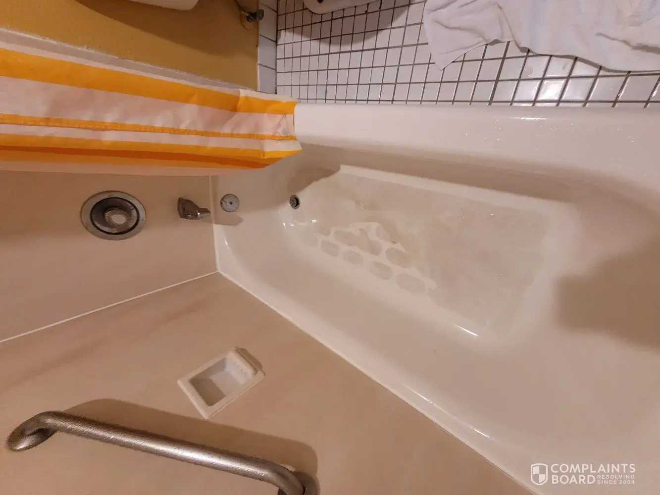 Our reservation was placed a month in advance for the King size bedroom and we received a handicap room with 2 queen size beds. The bathroom was an open area with a center drain. When I, or my husband took showers, the water drained throughout the bathroom and into the hallway making the tile wet and hazardous. We are in our 60's and should we take a fall on wet tile in the middle of the night, it would cause a severe injury resulting in medical attention and an exorbitant amount of hospital bills.