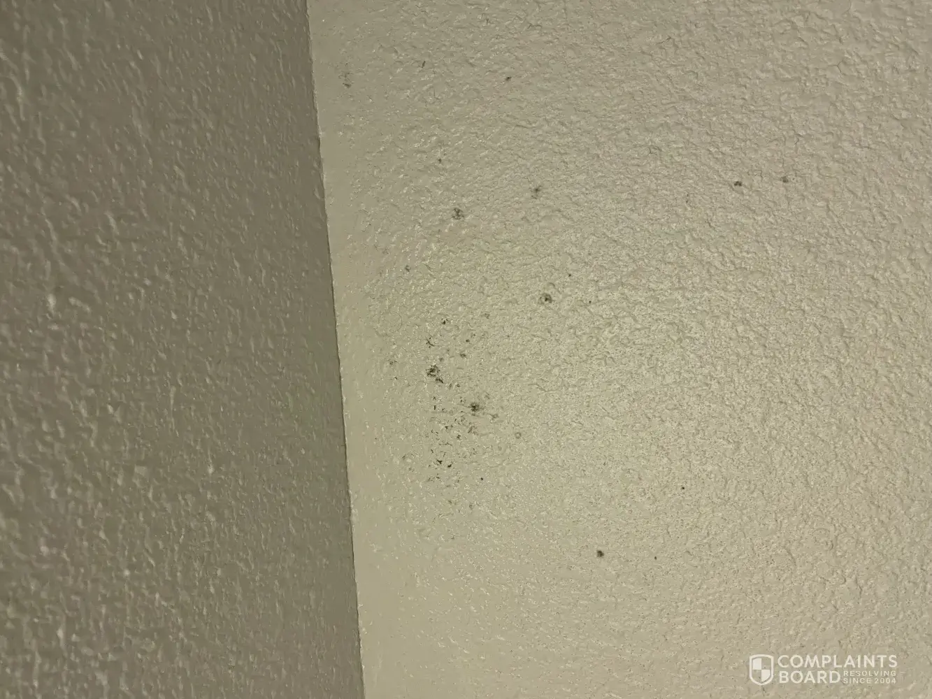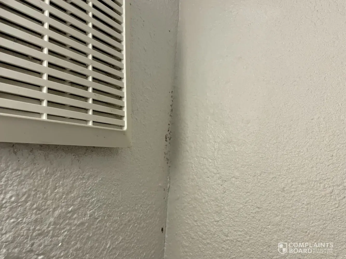 Mold present in the bathroom, missing the smoke alarm, a gaping hole in the bathroom wall, damaged door trim, broken alarm clock, etc.