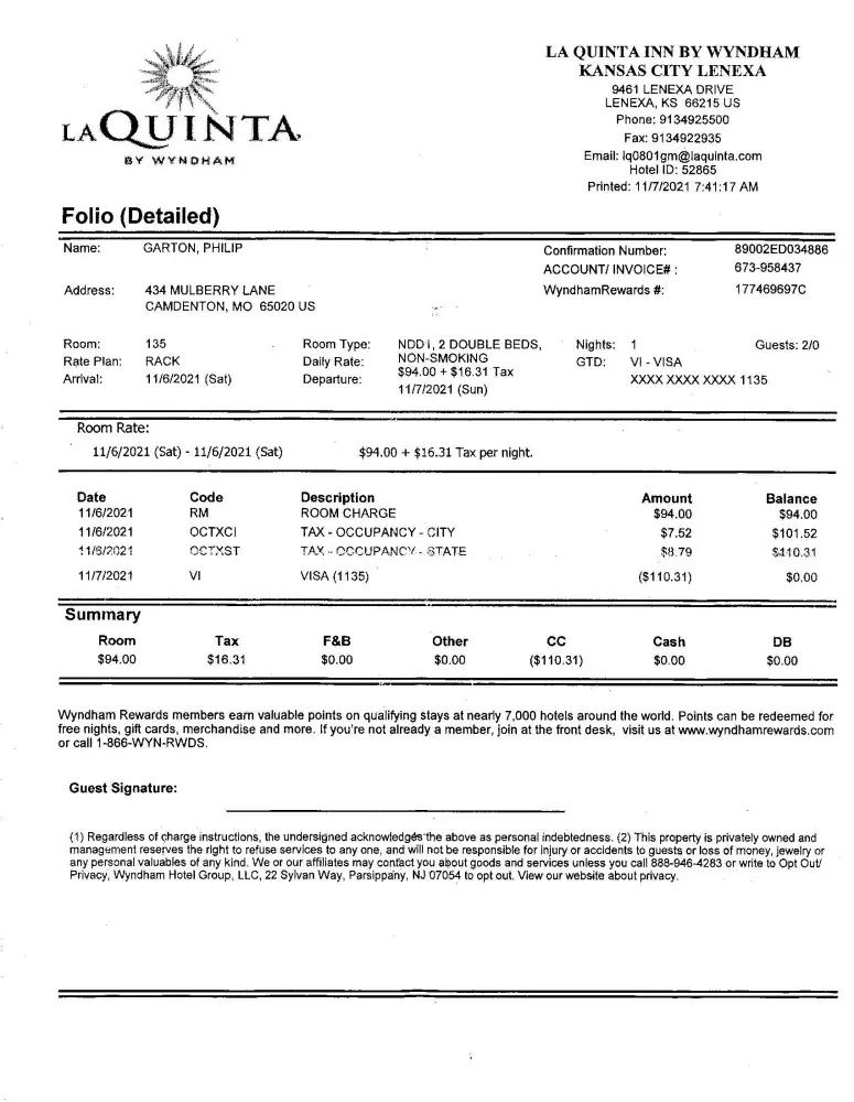 We visited your motel at 1711 Rollins Way in Columbus, Ga on October 23, 2021.