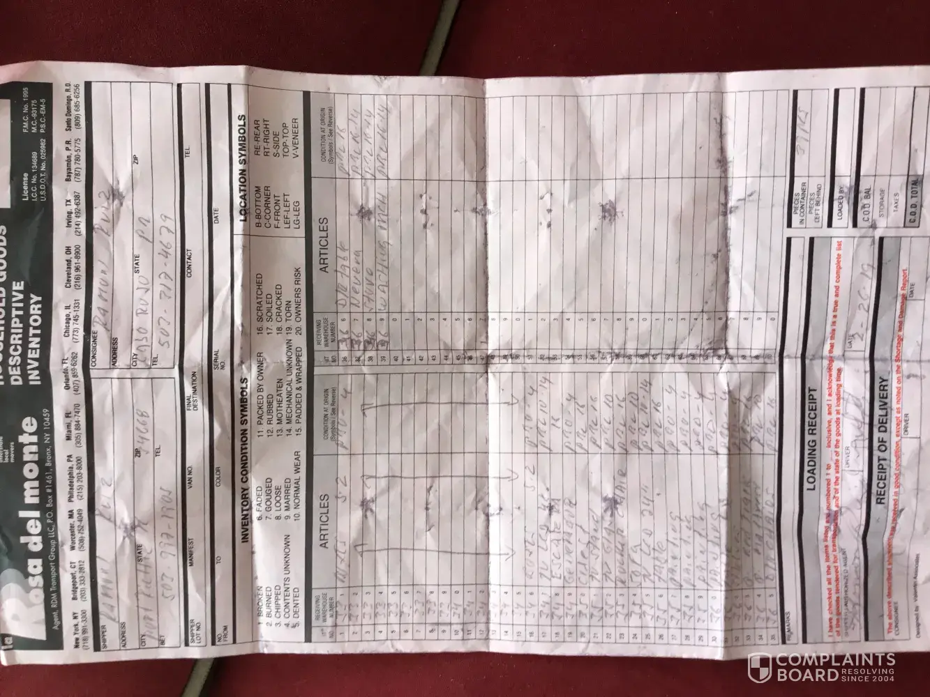 La Rosa Del Monte is UNPROFESSIONAL company. Don't give them your business. Moving from CT to Florida was a disaster! My furniture arrived 3 weeks late. And some things were broken! I moved to FL. Oct 3, 2008 and I'm still waiting to get a refund check for my damaged goods. If you do decide to go with this company, READ THE FINE PRINT ON THE CONTRACT. This is why I had to reported them to the Better Business Bureau. I suggest anyone that has a problem with this company do so as well.