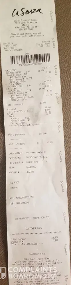I went to La Senza in Bayshore where i was charged double for my bras! i called to let them know so i can get my money back, after calling once/twice a week for 2 months i still have NOT received my money ! this is rediculious & i will deffinatly WONT be shopping her anymore !