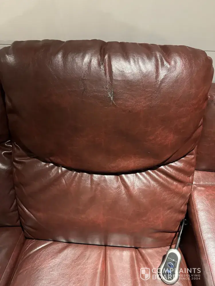 We have experienced the same thing. We bought form Lazy Boy, because they were known for recliners and quality. We were told in the store we were buying a leather recliner. We paid $1150. Two years later the leather is flaking off! Our local store is closed. I called the next store within our area, and were told it is out of warranty. We were scammed and lied to. DO NOT BUY LAZY BOY PRODUCTS! The sales people are CLUELESS! Very angry and will spread the word.