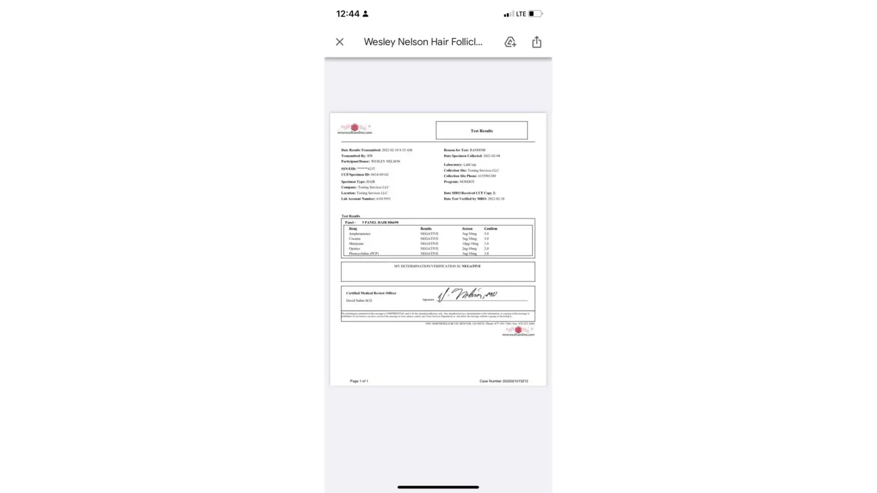 Finally my research of this Dr is paying off. He is signing off on test that are ripping families apart I haven't seen my kids in 2 years because of this so mro not even reviewing the test and actually he supposedly was doing this out of Indianapolis Indiana sending test to a vacant building. I also ran a background check on him and was completely shocked I suggest everyone question everything. I looked him up and found this out two more mros they are using are Steven paschal and John tetrick. These drs are not reviewing anything and if parents do the research they would be shocked.