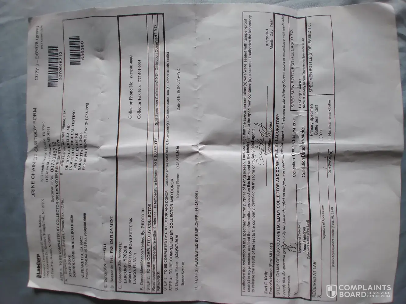 This whole ordeal has been exasperating which has dramatically impacted my way of life as well my ability to support his family. I have since tested negative for all substances with numerous valid & documented drug test screening facilities within recent weeks. I expect that labcorp will immediately retract the reported results and take whatever steps are necessary to have the results removed from my record to relevant agencies that the information was reported to.