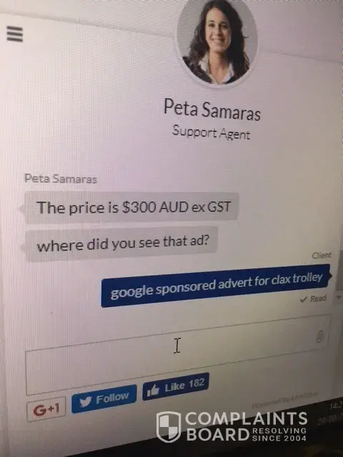 We are looking at a product as advertised in a google sponsored advert for item claxtrolley.