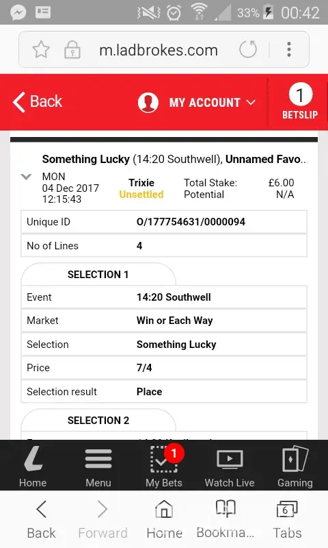 Ladbrokes Betting & Gaming unable to claim a bet