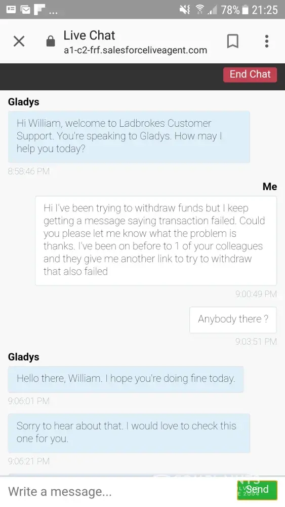 me: yes sending complaint to ladbrokes