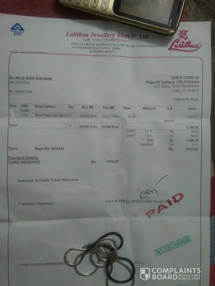 Complaint about Lalith Jewellery