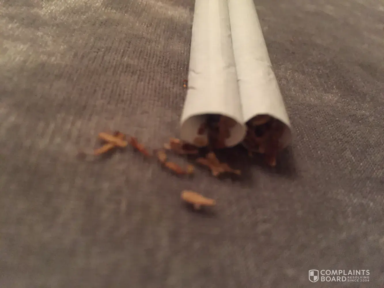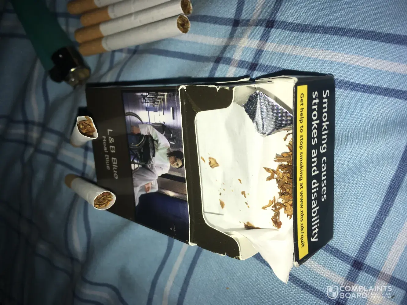Hi I have purchased a packet of 20 lambert& butler blue yesterday, I have had a couple of cigarettes out of the packet and then when I have come to take another one today half of the tobacco has fallen out out the cigarettes I really do not find this fair as the price of the cigarettes is not low and I have basically paid for 10 cigarettes for the price of 20 this has happened a numerous amount of times and I really do not agree with it and think I need to submit a complaint regarding this incident.