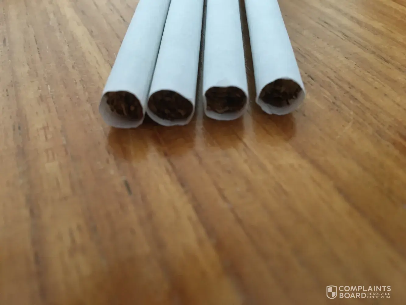 I purchased some cigarettes from Newbury post office, George st, Bolton and two in the packet were damaged with giant twigs hanging out. I have enclosed photos. I have been a loyal customer for nearly twenty years and it's only the forth or fifth time in all those years. But this time it wasn't just one damaged. Look forward to your response