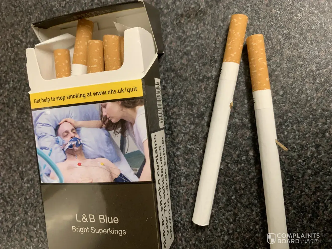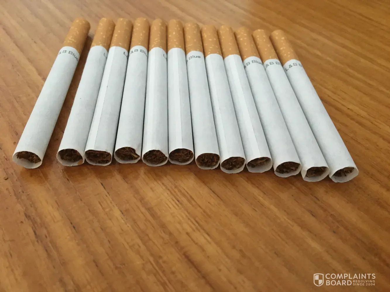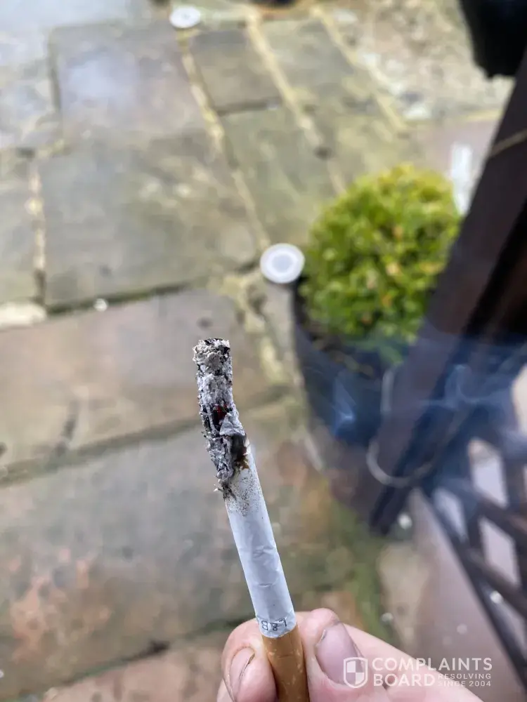 Iam writing this email of complaint as iam extremely disappointed in the last few packets of cigarettes, they have been full of large branch-like sticks and burning down extremely quickly. I have been a loyal customer to Lambert and butler for 15 years and smoke 20+ a day so I do spend alot of money so to feel like iam not enjoying my cigarettes as i always do is extremely upsetting. I hope you take this complaint seriously and I would like you to respond to me as soon as possible.