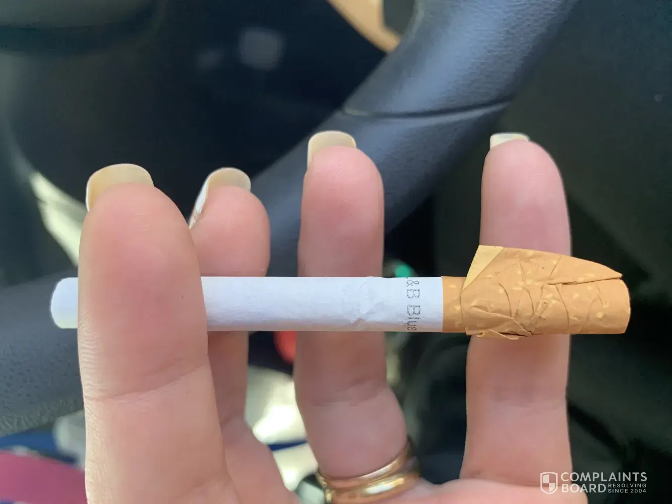 Upon opening a cigarette I found a strip of fishing line around 5 cms inside the cigarette. I had already smoked a few from the packet so it's quite possible I had smoked a cigarette with the wire in. As a long term customer this is something that would make me take my business to another brand. I await your reply regarding this serious matter. [protected]@gmail.com