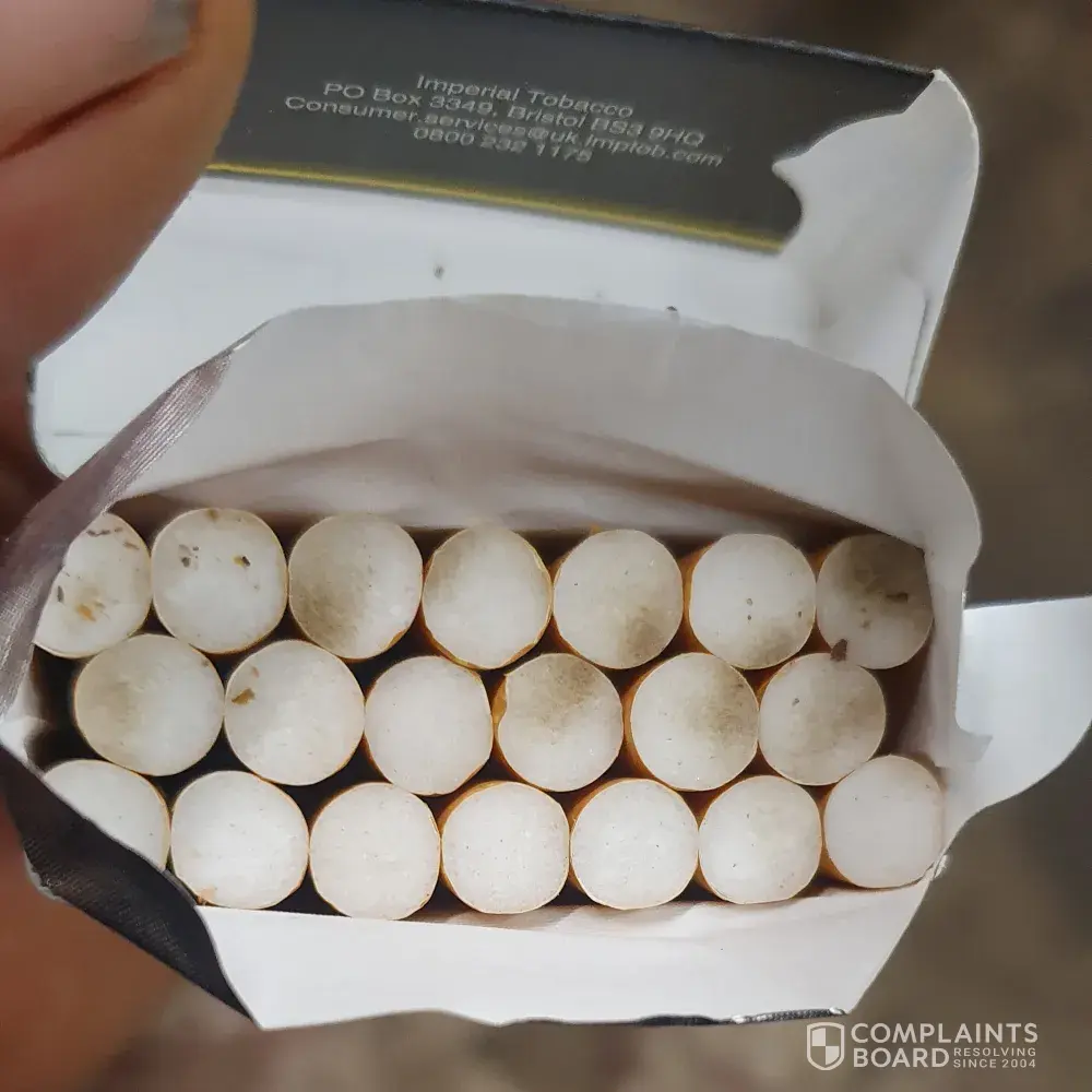 I bought a packet yesterday at the McColl's shop in four acres Bristol and when I got home I took one out and realised that they have been made with not enough tobacco inside as the day went on I realised that every cigarette was the same I think it's a joke that they cost so much now a days and they have been made like this would appreciate a refund or something thanks