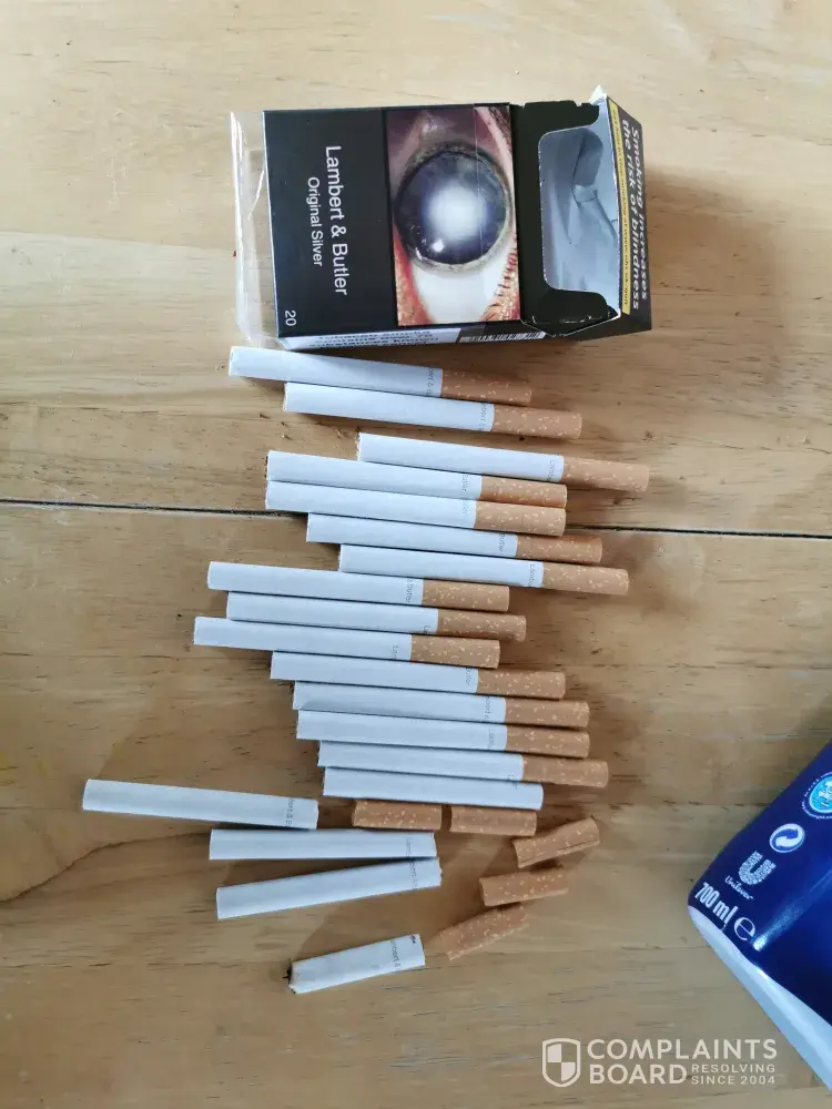 I purchased a packet of Lambert and butler silver today at my local store and once opened and I'd smoked a few I pulled 1 out for my partner and I and they was not filled with tobacco. I wouldnt mind but they are not cheap so I expect to get what I'm paying for not cigarettes half filled.