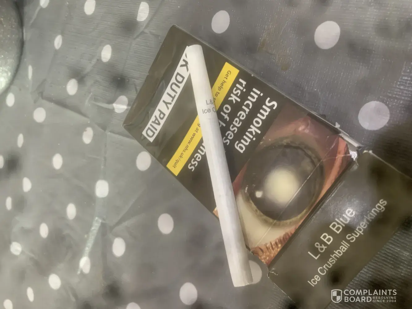 Today I have had a horrific experience and I demand satisfaction. Today I did as I do any other day and rolled a morning cannabis joint to do this it requires me to twist out the innings of a cigarette into a joint skin, I used a L&B super king real blue and inside I found a long strand of white plastic. I am just glad I had twisted it out and not smoked it unaware of what was inside. You should be ashamed to have such lack of product quality standard to think this could Ever be in a [censored] I've smoked made by your company or anyone has ever bought from your company is a scary thought. I still have the strand if you want it back as it's not what I actually wanted or paid for.