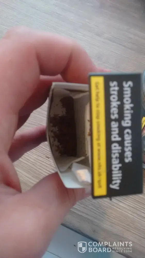 Hi I don't usually complain about this kind of stuff but the last four or five 20 packet of Lambert and butler silver have been of very poor quality, there seems to be lot of tobacco fallen out of the cigarettes and into the bottom of the box which you can see in the picture which is making me lose over half a cigarette a time and the overall taste and smell just don't seem right,
