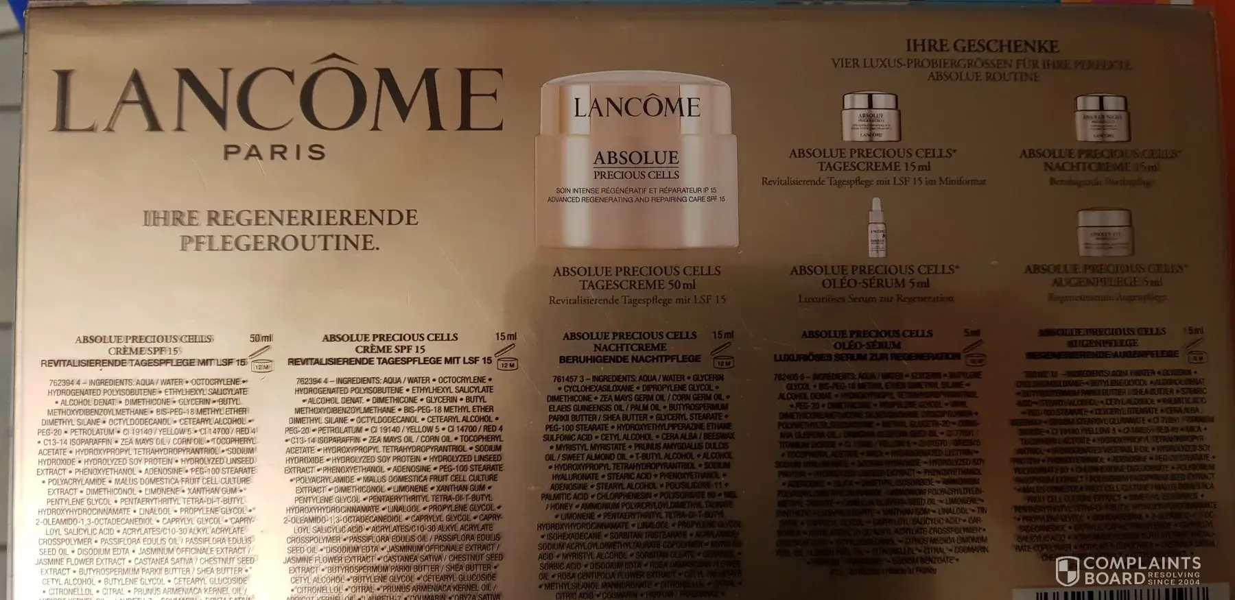 Lancome absolue set products are different to the online picture, and different to the package list
