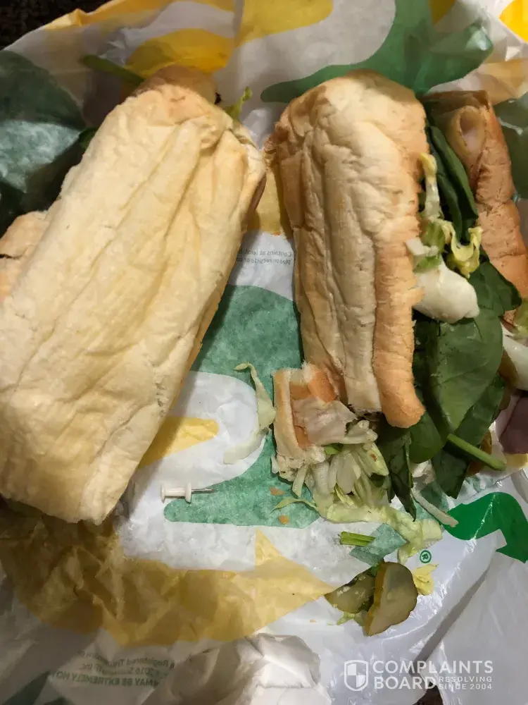 When I took a bite of my sandwich a thumbtak as inside my food and stabbed inside of my mouth and my boyfriend saw and his friend and this happens on 07-10-2018 at 5 pm