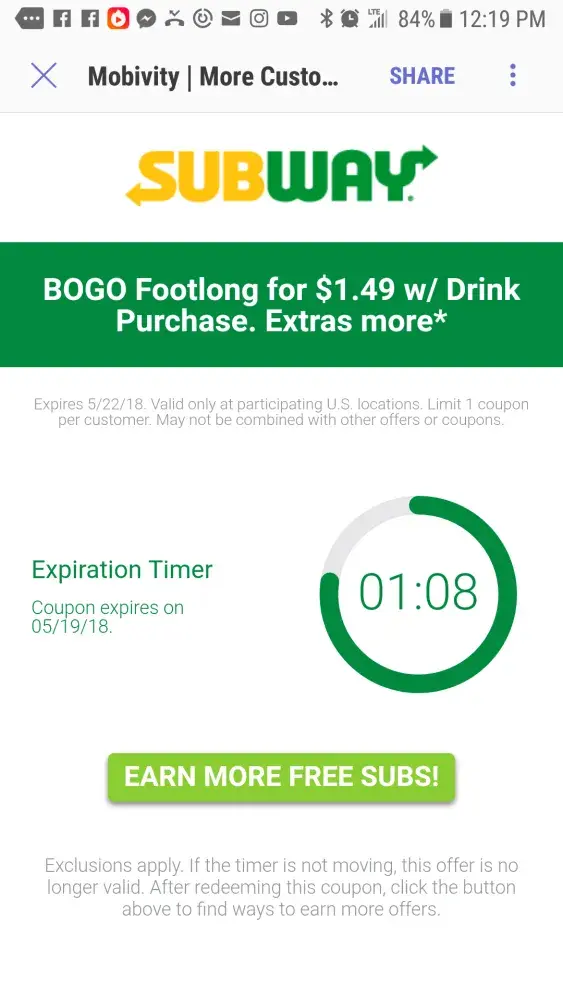 Try use my go to coupon and was denied after coming to this Subway from many months and being able to use my coupon