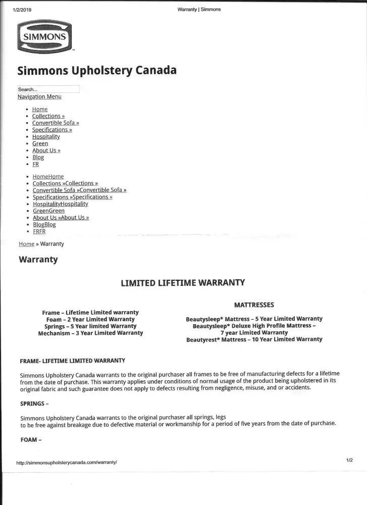 On 1/11/2019 I emailed Customer Care at United Furniture Industries, Inc.