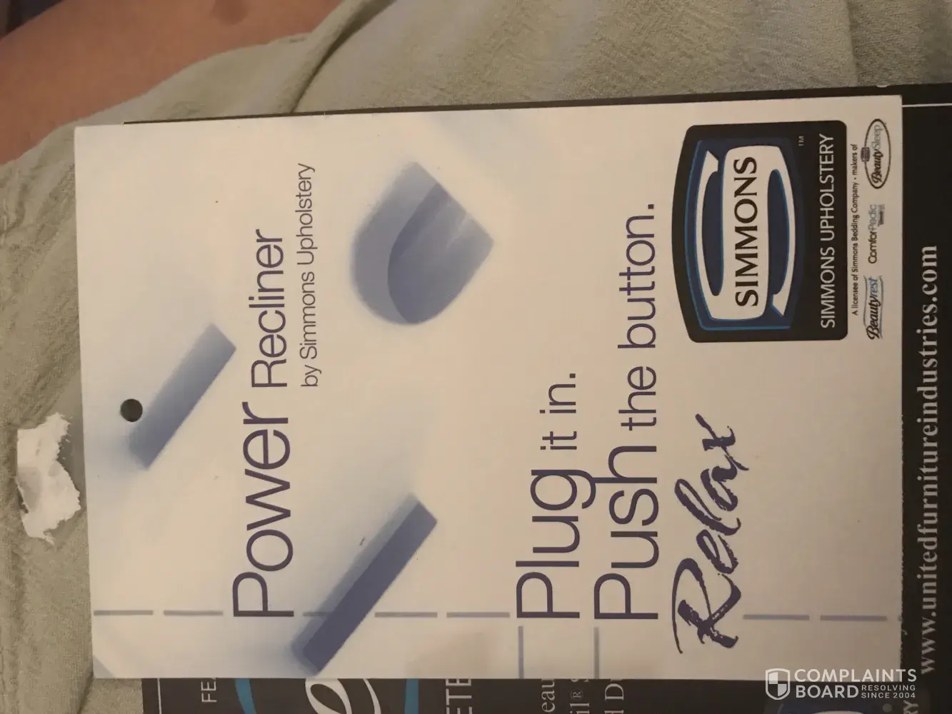 After the. Original problem with the wires ripping out of the motor unit. Now the frame is falling apart. See photos. Shame on United furniture industries for selling their poorly made furniture under the Simmons name. All of the problems we have had with the sofa is less than one year.