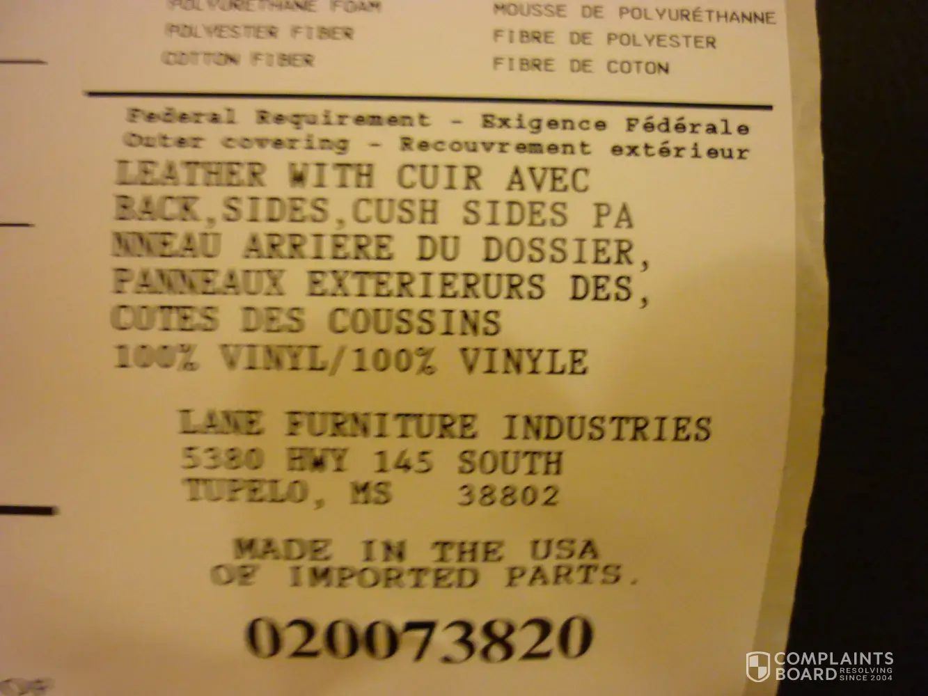The problem is that the sitting furniture was sold to me as "Leather". It's not ... it's bonded or bi-cast leather. For Lane, or any furniture company for that matter, to sell bonded or bi-cast upholstery as "leather" is nothing more than careless, disrespectful of their customers, and downright deceitful. How can Lane sell their upholstered furniture as "leather" for thousands of dollars with a 1 year warranty knowing full well that in 2 to 4 years it will begin disintegrating to the extent that it will require reupholstering or replacing.